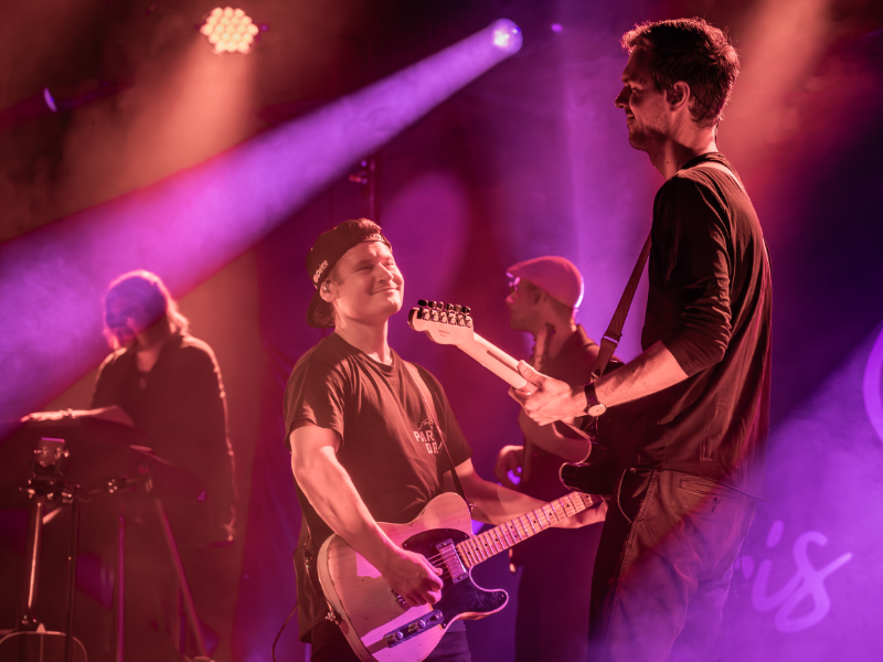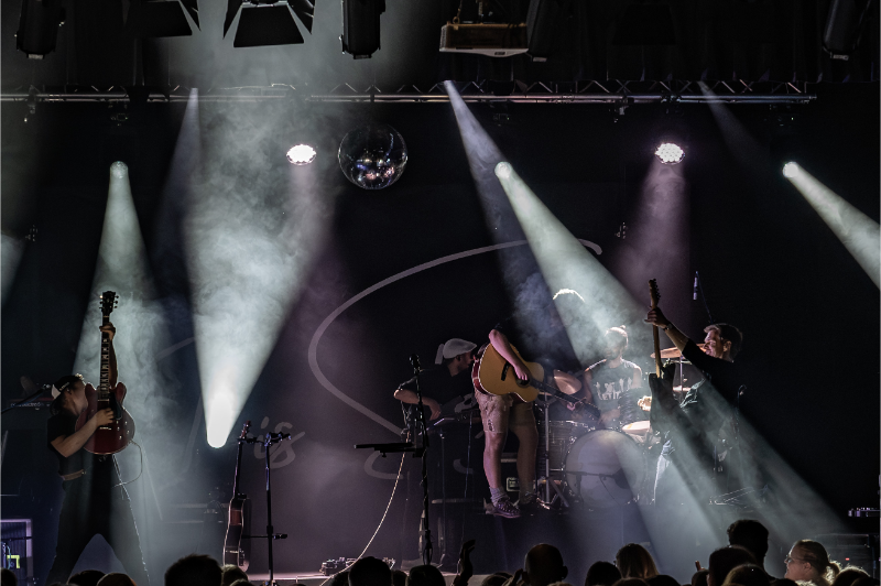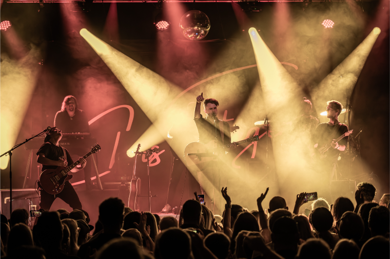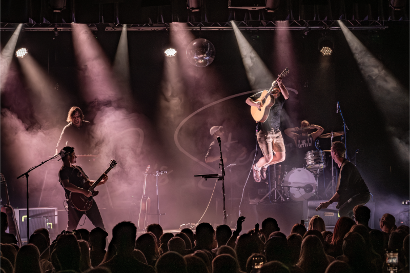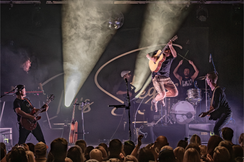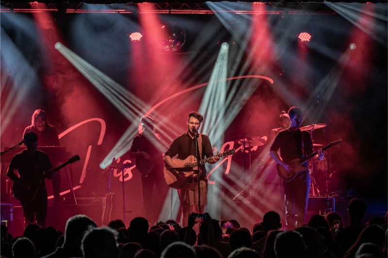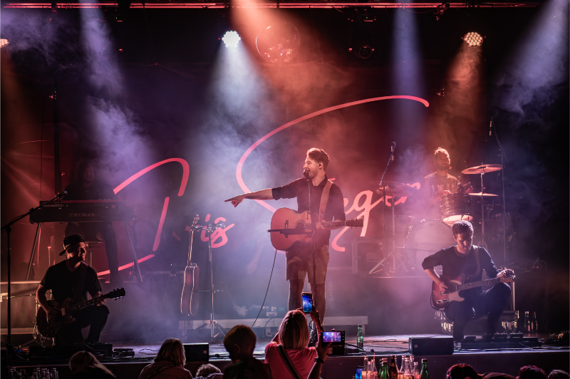 Beim Licht ergänzten wir die bestehende Saal-Lichtanlage um tourkonforme Show-Lights gemäß Bühnenanweisung. Gemeinsam mit der Tourcrew entstand so ein dynamisches Lichtdesign, das die emotionalen Wechsel der Show – von intimen Singer-Songwriter-Momenten bis zu energiegeladenen Bandnummern – wirkungsvoll unterstrich.