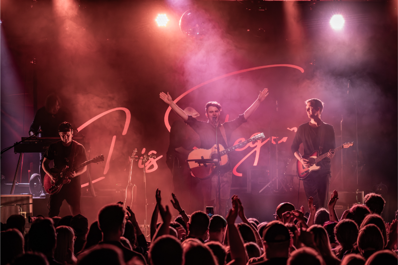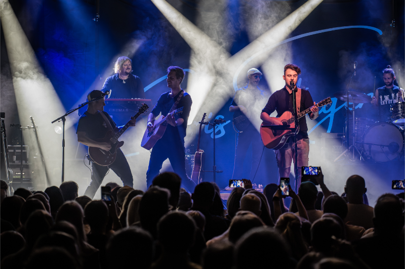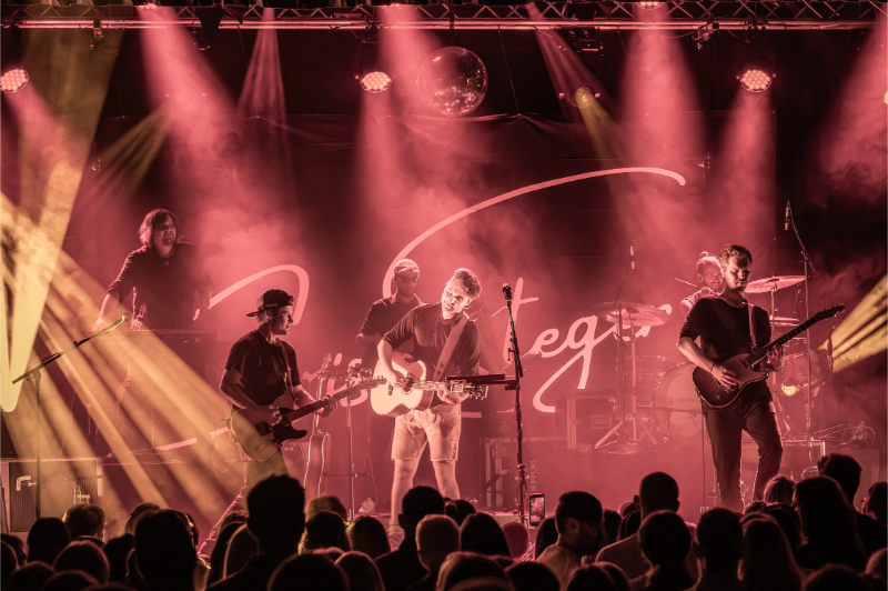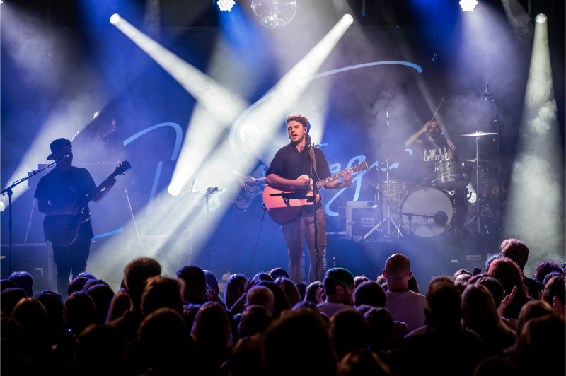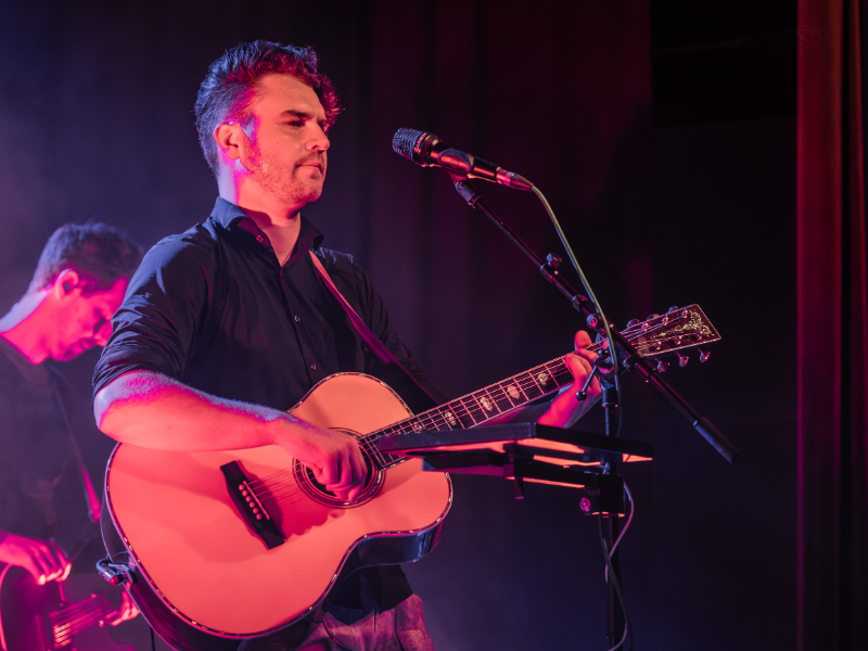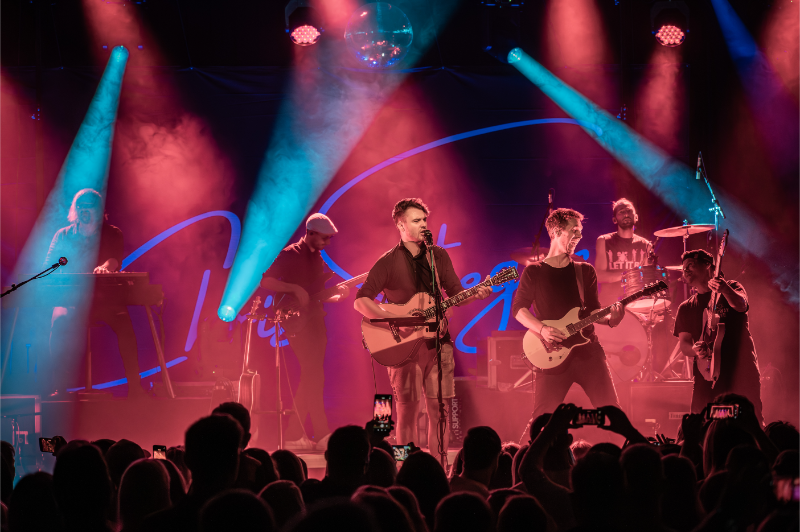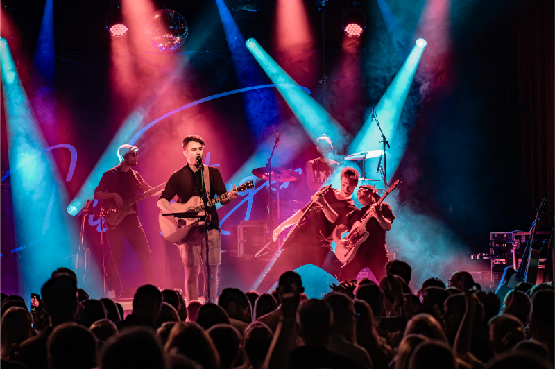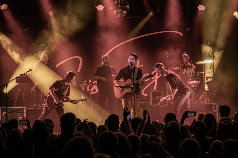 Beim Licht ergänzten wir die bestehende Saal-Lichtanlage um tourkonforme Show-Lights gemäß Bühnenanweisung. Gemeinsam mit der Tourcrew entstand so ein dynamisches Lichtdesign, das die emotionalen Wechsel der Show – von intimen Singer-Songwriter-Momenten bis zu energiegeladenen Bandnummern – wirkungsvoll unterstrich.