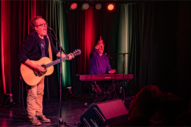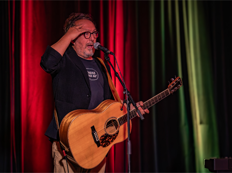 An seiner Seite: Chris Heller, seit vielen Jahren sein kongenialer Partner am Klavier, Komponist und Texter, der mit feinem Gespür zwischen lyrischer Begleitung und pointiertem Konterpunkt pendelt. Gemeinsam bilden die beiden ein hervorragend eingespieltes Duo, das pointierte Stories, philosophische Seitenhiebe und mitreißende Lieder zu einem stimmigen Ganzen verbindet – eine Mischung, die das Publikum auch bei anderen Stationen der „Lästerlieder“-Tour bereits begeisterte.